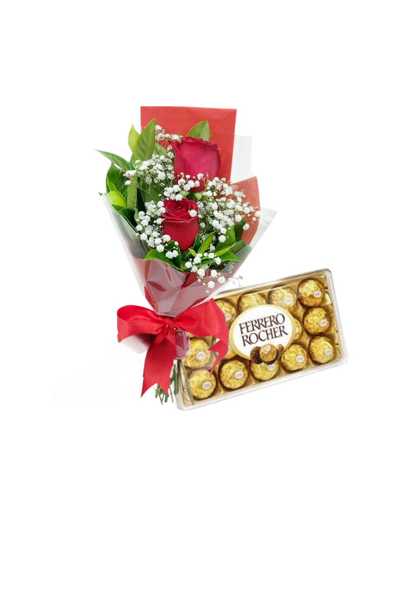 Arranjo com Rosas e Chocolate