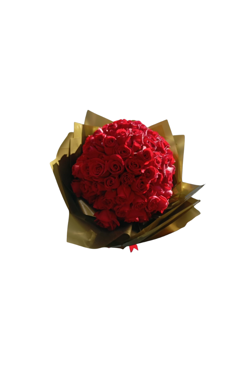 Um buquê absolutamente imponente e memorável, composto por 100 rosas vermelhas